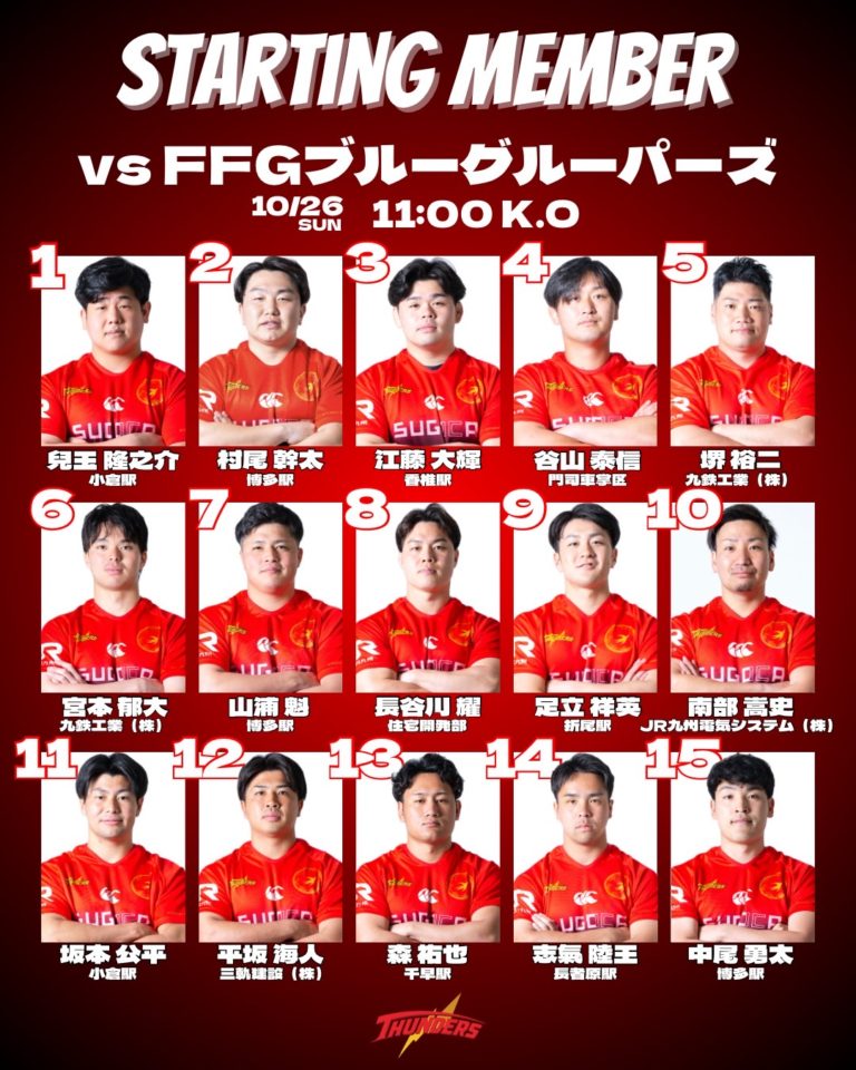 今週末、27日(土)に行われる、トップキュウシュウリーグ第1節西日本シティ銀行ラグビー部 さんとの出場メンバーです!